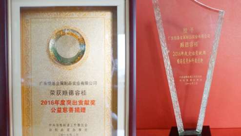 恒基公司榮獲2016年度“經(jīng)濟發(fā)展和科技創(chuàng)新”獎及“公益慈善”突出貢獻獎